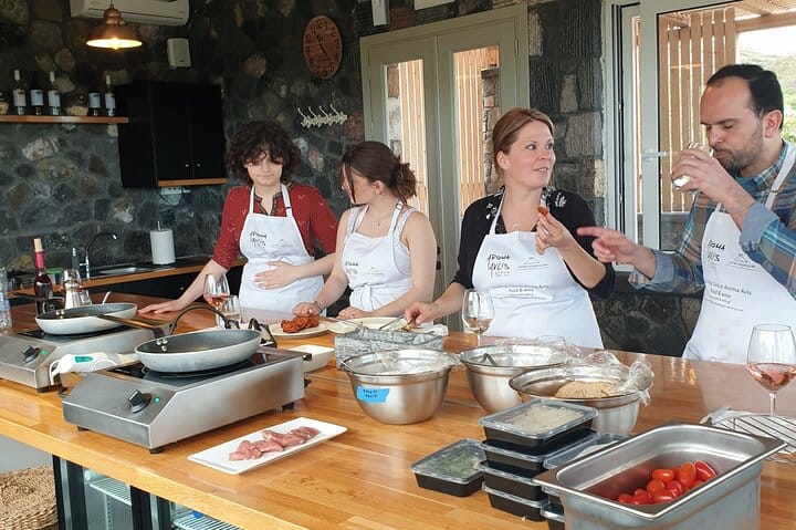 With the help of a professional local chef you'll get a hands-on training and you will learn new cooking techniques that can easily be repeated at home. You'll discover our traditions and learn tips about the unique Santotinian and Mediterranean cuisine. Vegetarians are welcome. You can cook a fully vegeterian menu !!