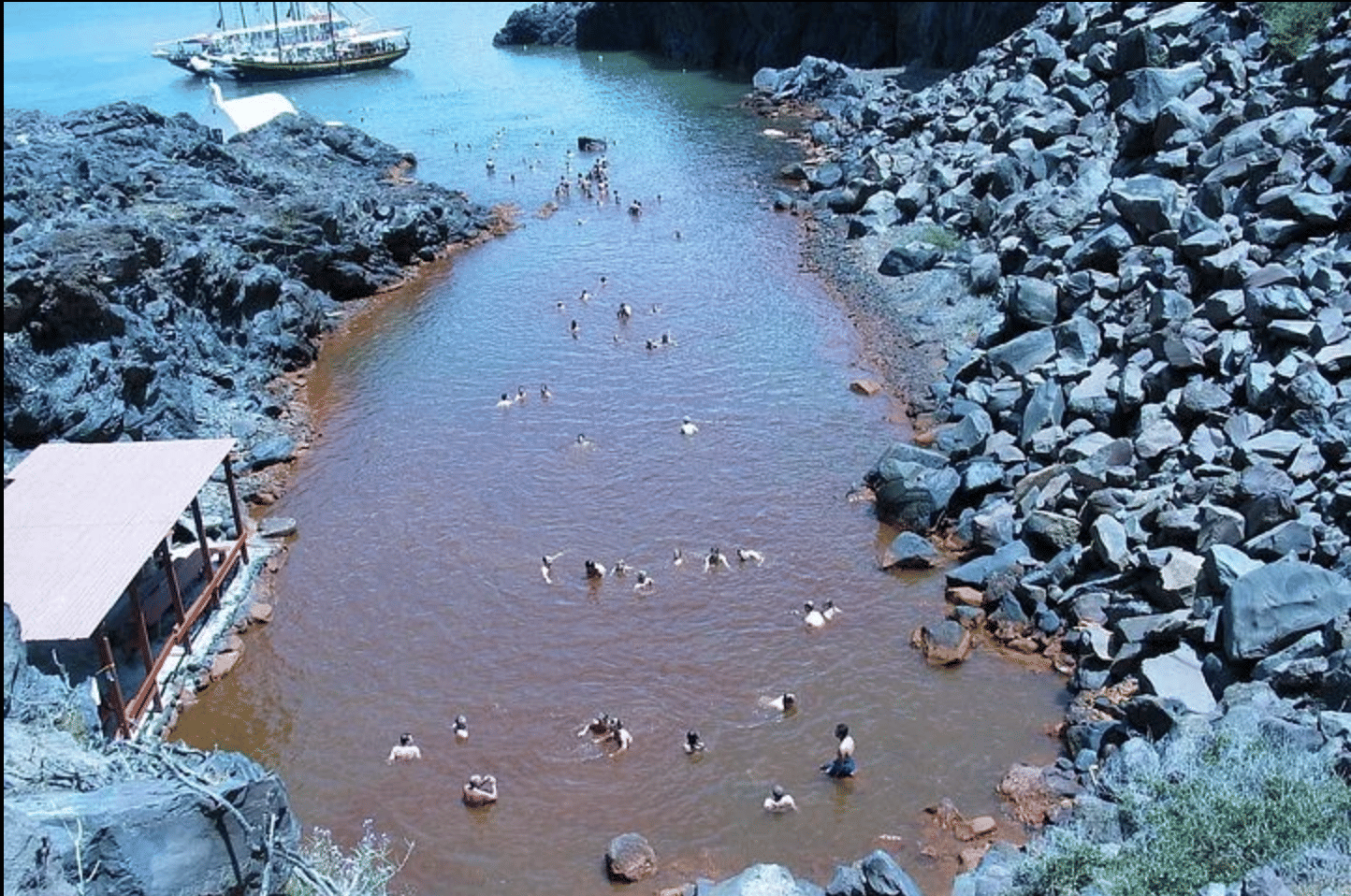 Sail to the volcano and its sulfur waters on a traditional Greek caique boat.